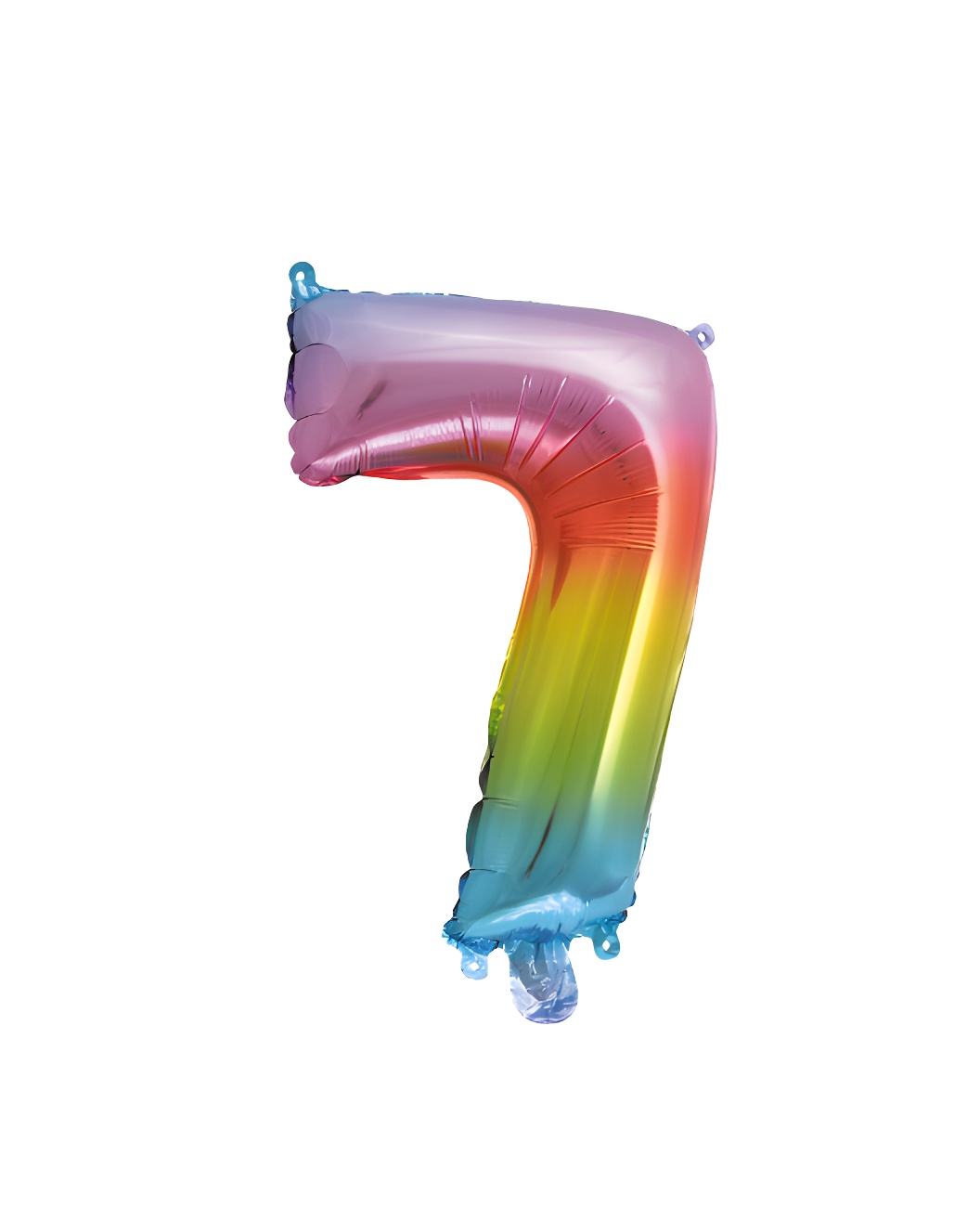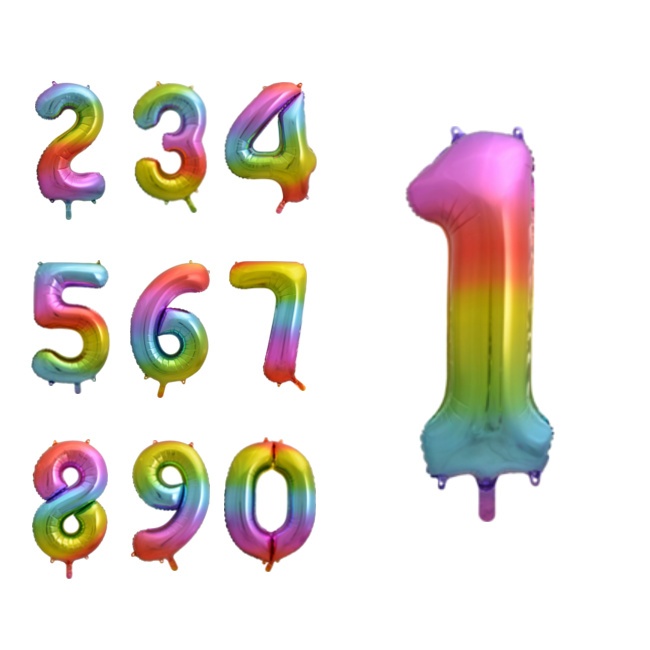 Diese Dekoration, die zur Kategorie der Zahlenballons gehört, kann zusammen mit den Produkten der Einhornparty, der Gay Pride Party oder einfach für einen Geburtstag mit einer bunten Ästhetik verwendet werden.