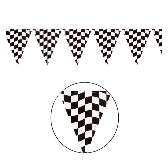 Der Wimpel besteht aus einer Reihe von Kunststoffwimpeln auf einem Band mit einem Aufdruck der karierten Flagge. Er lässt sich leicht an- und abmontieren und eignet sich daher für eine Vielzahl von Motorthemen.