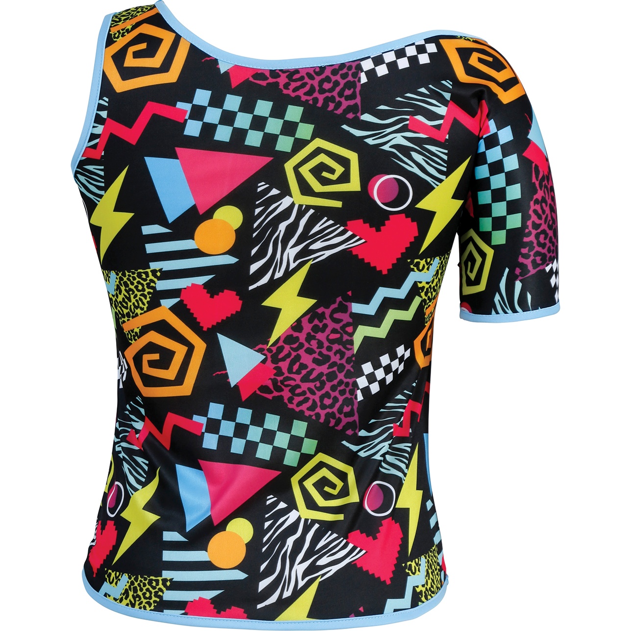 Erleben Sie die Energie der 90er neu mit diesem neonfarbenen Retro-T-Shirt. Der lebendige Print mit geometrischen Motiven und retrohaften Grafiken fängt die Pop-Ästhetik und die Nostalgie des Jahrzehnts ein. Der bequeme Schnitt und das leichte Polyestergewebe sorgen dafür, dass Sie es den ganzen Abend über stilvoll tragen können. Ein auffälliges, vielseitiges Teil, das Sie mit Retro-Accessoires kombinieren und so im Handumdrehen einen Vintage-Look kreieren können.
