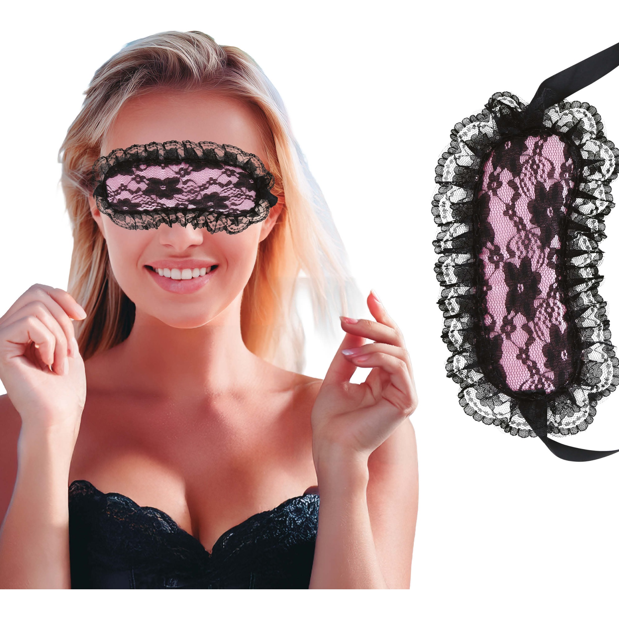 Sinnliche rosa Augenmaske mit eleganter schwarzer Spitze, die den Blick betont und Ihren intimen Momenten eine verführerische Note verleiht.