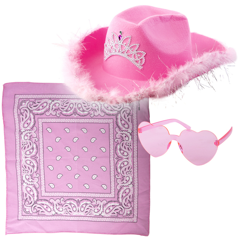 Verwandeln Sie Ihr Outfit: Elegantes rosa Cowgirl-Set - ideal für Karneval, Motto-Partys oder zum Verkleiden.