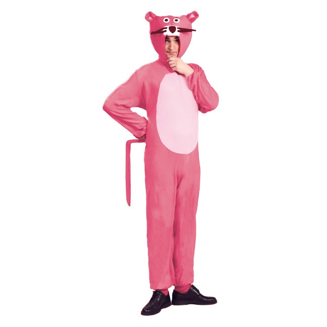Es besteht aus einem rosafarbenen Overall mit langen Ärmeln mit Gummizug an den Enden und einem Kreis in einem helleren Rosaton, der den Unterleib betont. Der Overall wird mit einem Klettverschluss geschlossen und ist daher sehr angenehm zu tragen. Das Highlight des Kostüms ist aber zweifelsohne die lustige Kapuze mit dem Panthergesicht.