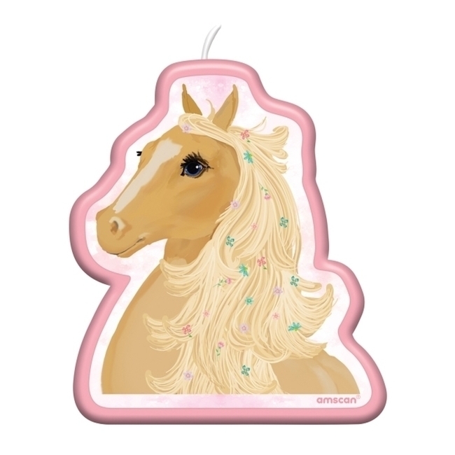 Diese zart pastellfarbene Kerze zeigt eine schöne Stute mit bunten Blumen in der Mähne. Damit wird jede Geburtstagstorte ein Erfolg.