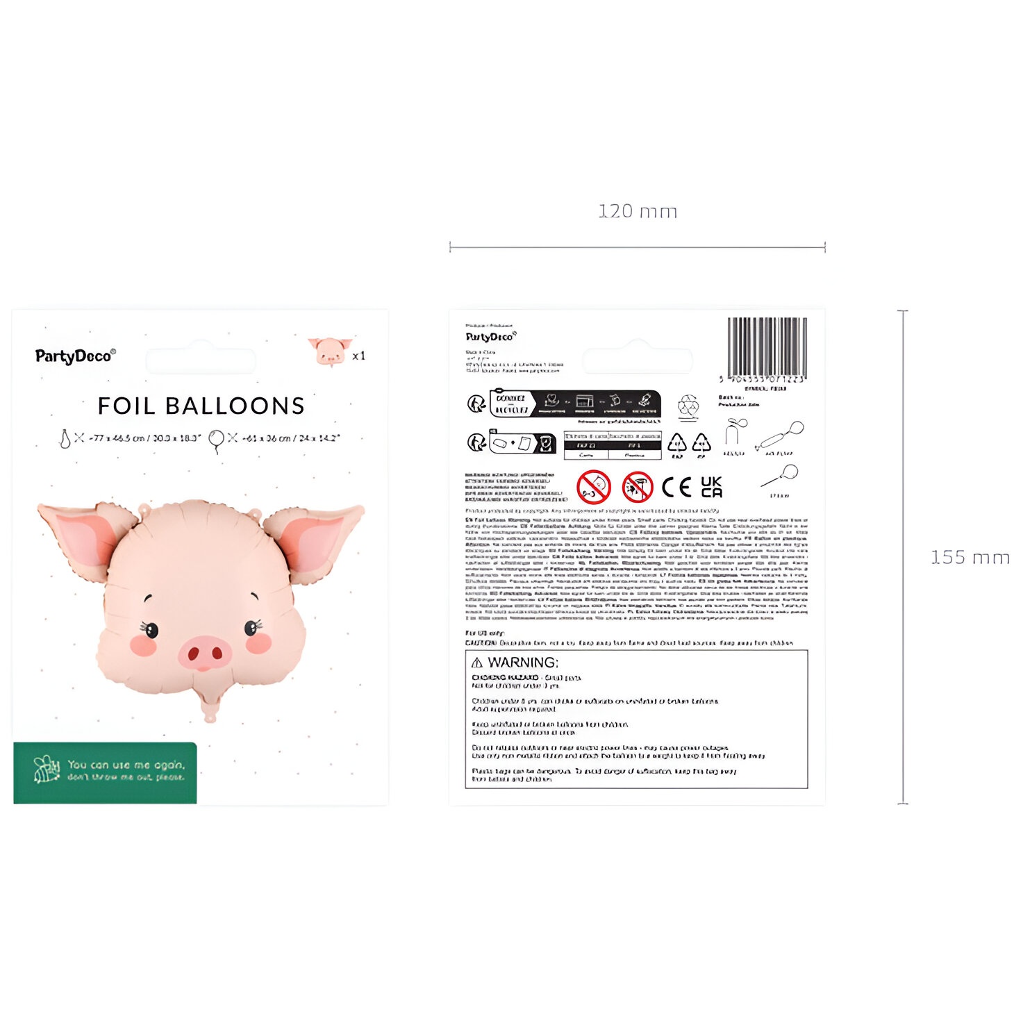 Offizieller Peppa Pig-Folienballon in Rosa mit dem typischen Gesicht des Charakters. Ungefüllte Maße: ca. 77 x 46,5 cm; nach dem Aufblasen: ca. 61 x 36 cm. Zum Befüllen mit Luft und Helium geeignet - ideal, um Ihre Kinderveranstaltung zu dekorieren und jedem Raum eine fröhliche, wiedererkennbare Note zu verleihen. Im Set enthalten ist ein Aufblasröhrchen zum erleichterten Aufblasen, so können Sie den Ballon schnell und einfach befüllen.