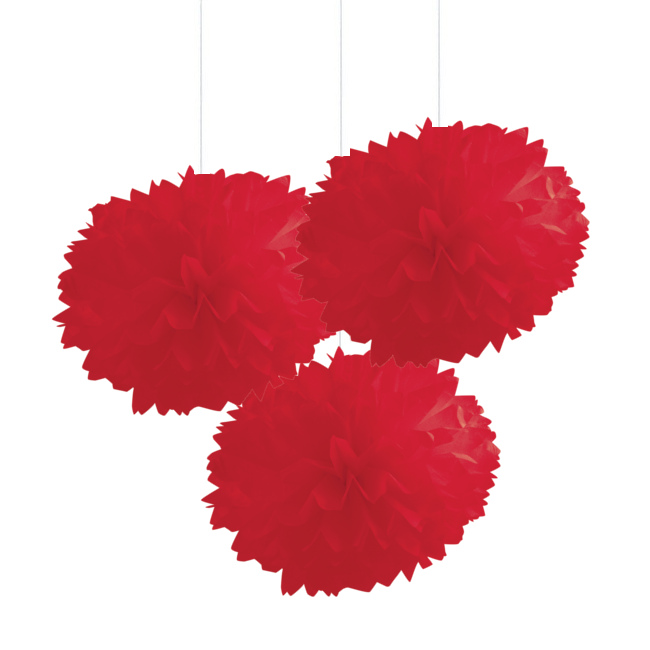 Rote Pompon-Anhänger aus Papier - 3 Stk.