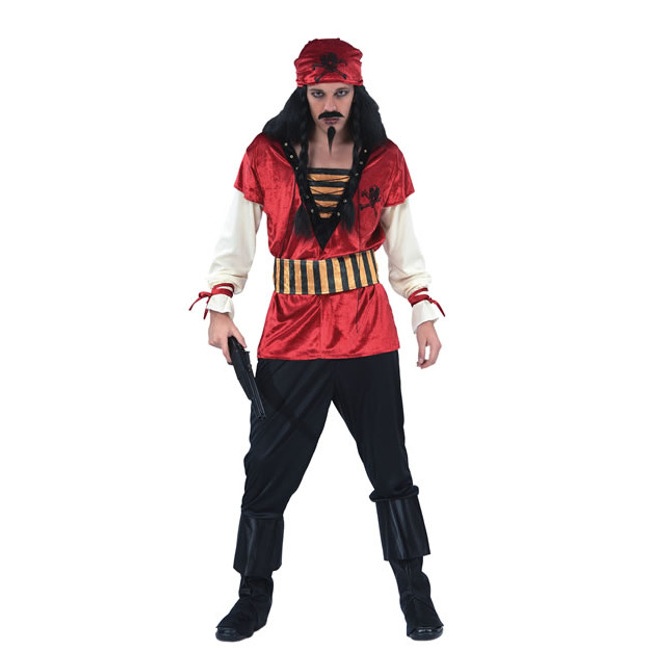 Rotes Piratenkostüm mit Totenkopf für Männer