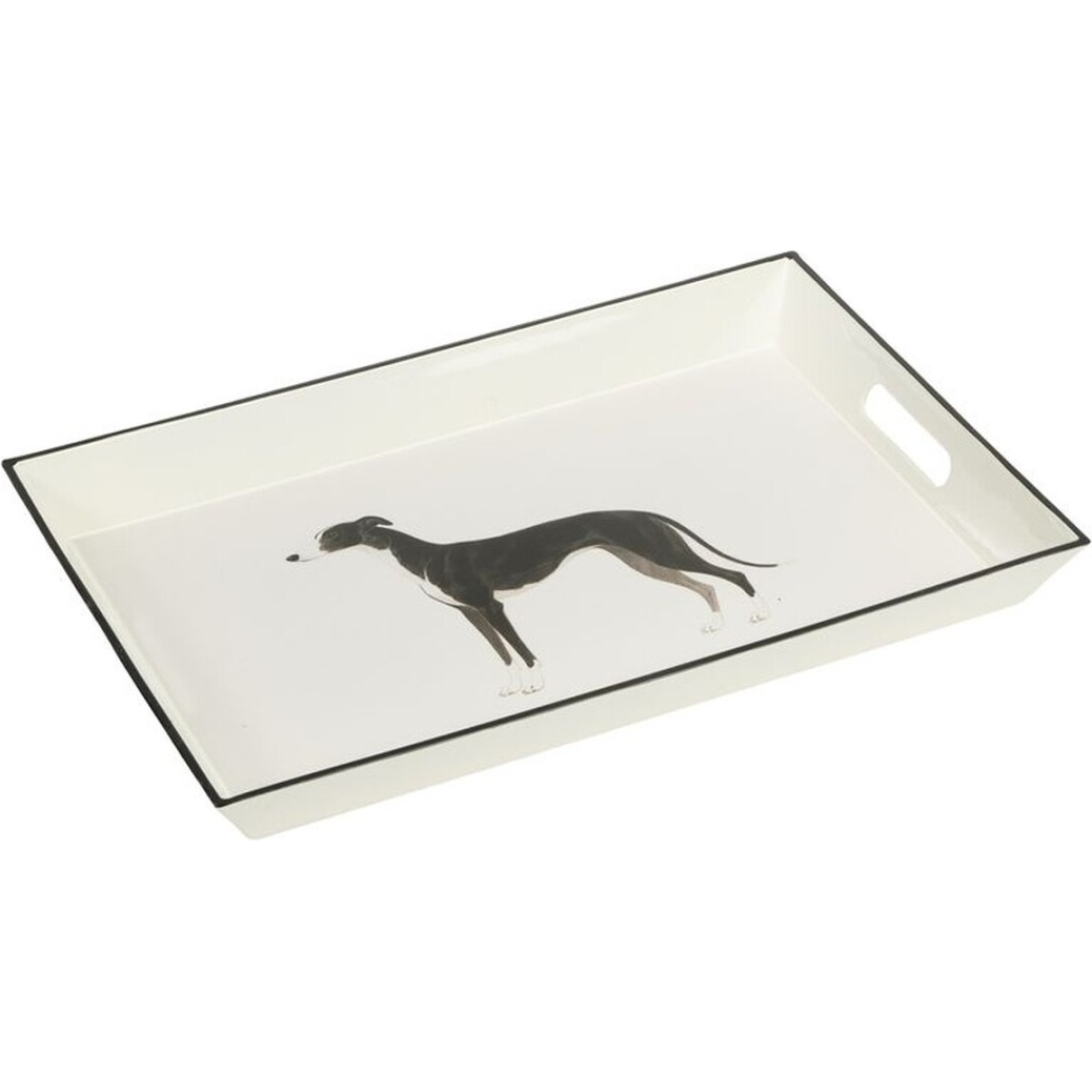 Elegantes Tablett mit Griffen, das eine Windhund?Illustration mit klassisch anmutendem Finish kombiniert.