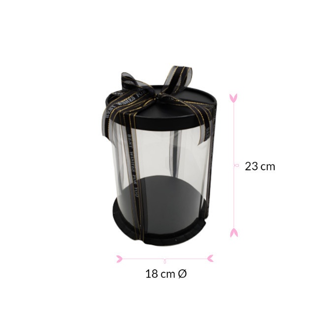 Schwarze runde Tortenschachtel 18 x 18 x 23 cm mit Schleife