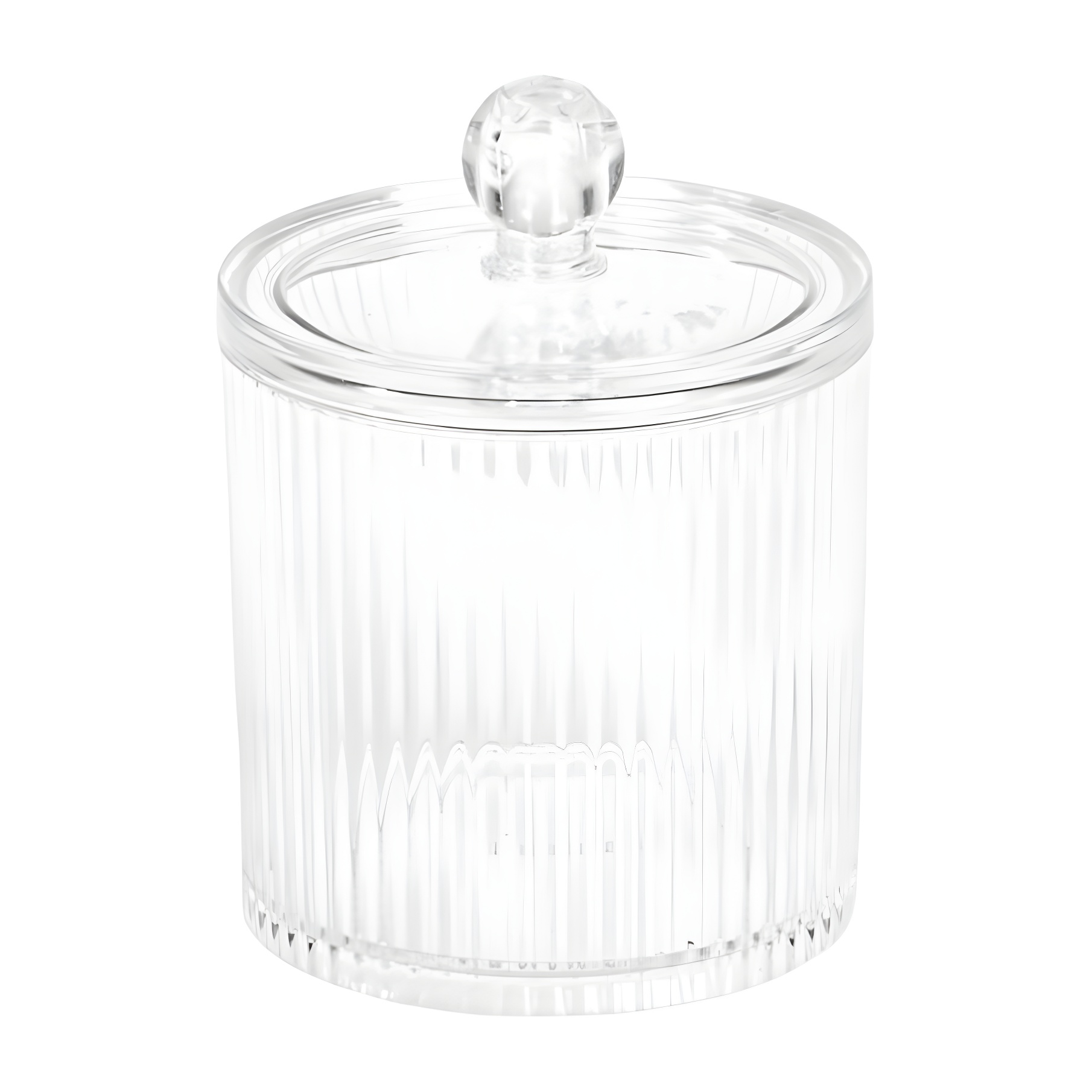 Das Design mit vertikalen Linien und der Deckel mit Knauf verleiht Ihrem Schminktisch oder Bad einen Hauch von Raffinesse und verbindet Funktion mit Ästhetik.