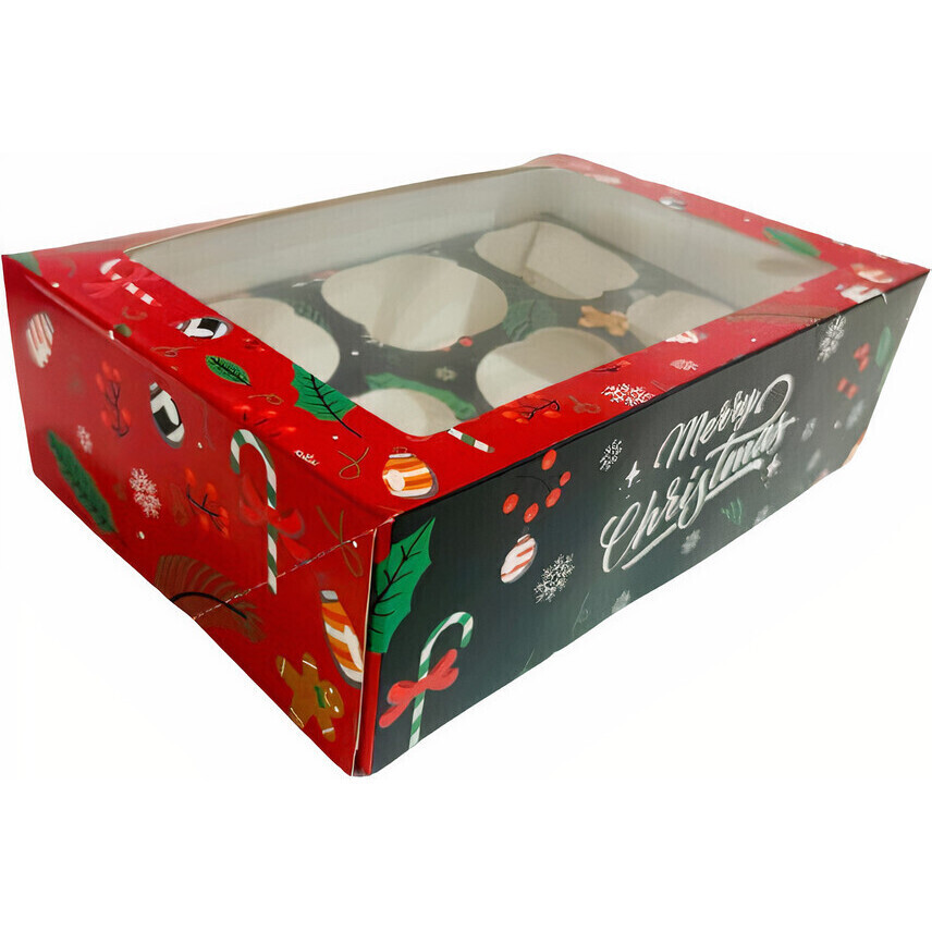 Schachtel für 6 Weihnachts-Cupcakes 'Merry Christmas'