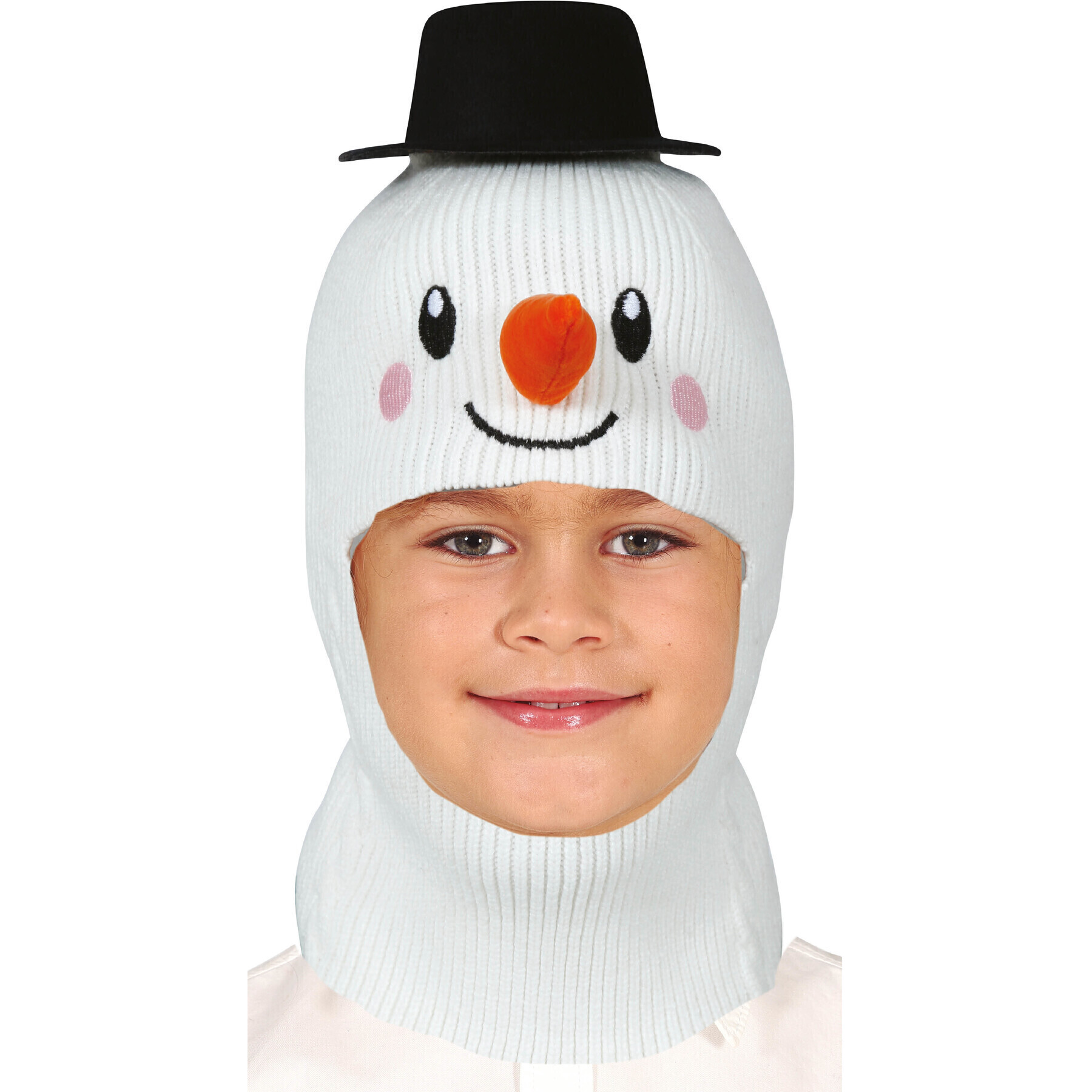 Schneemannmütze mit Woll-Effekt und Nase