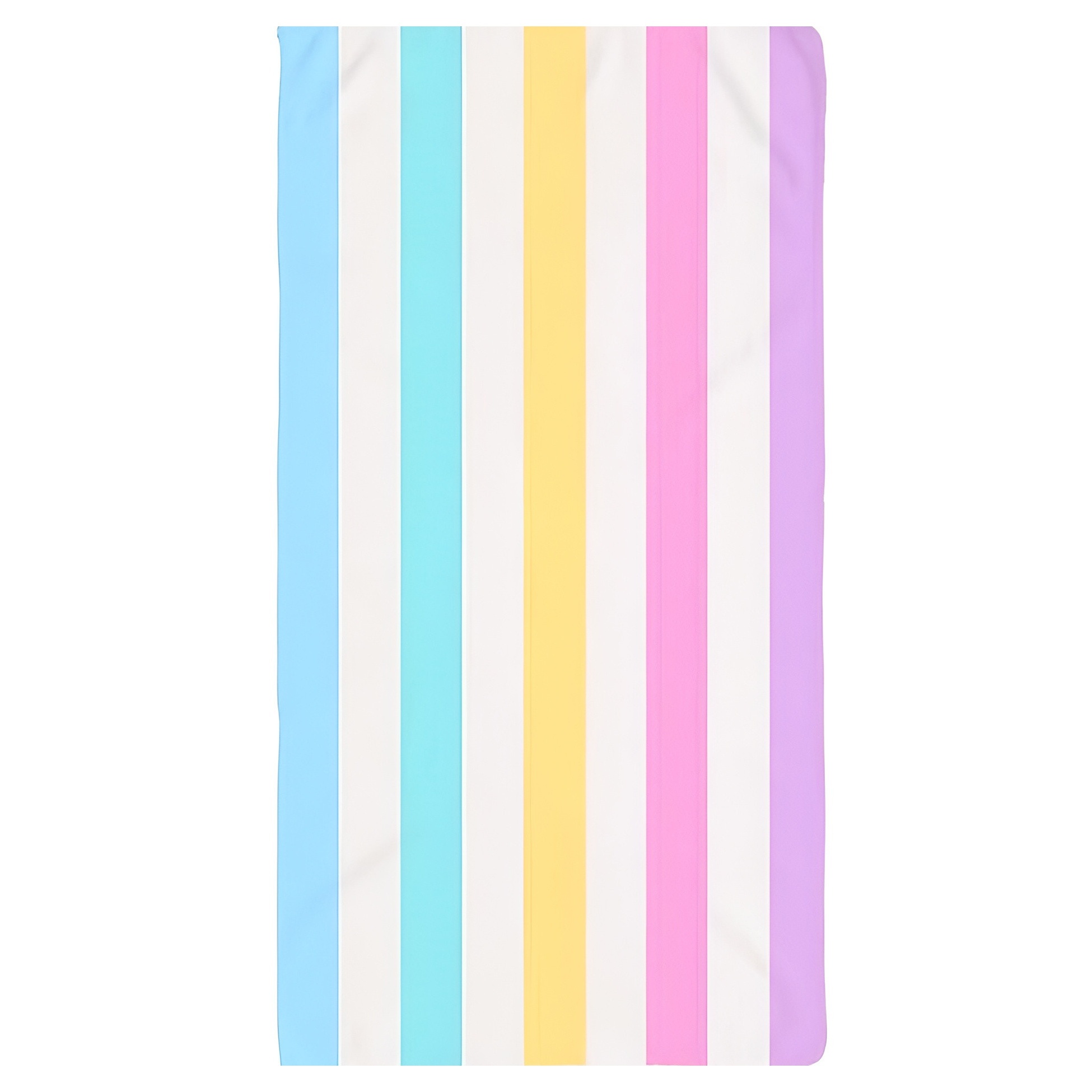 Schnelltrocknendes Handtuch mit gestreiftem Pastell-Design, das dem Strand- oder Bademoment eine fröhliche, zeitgemäße Optik verleiht.