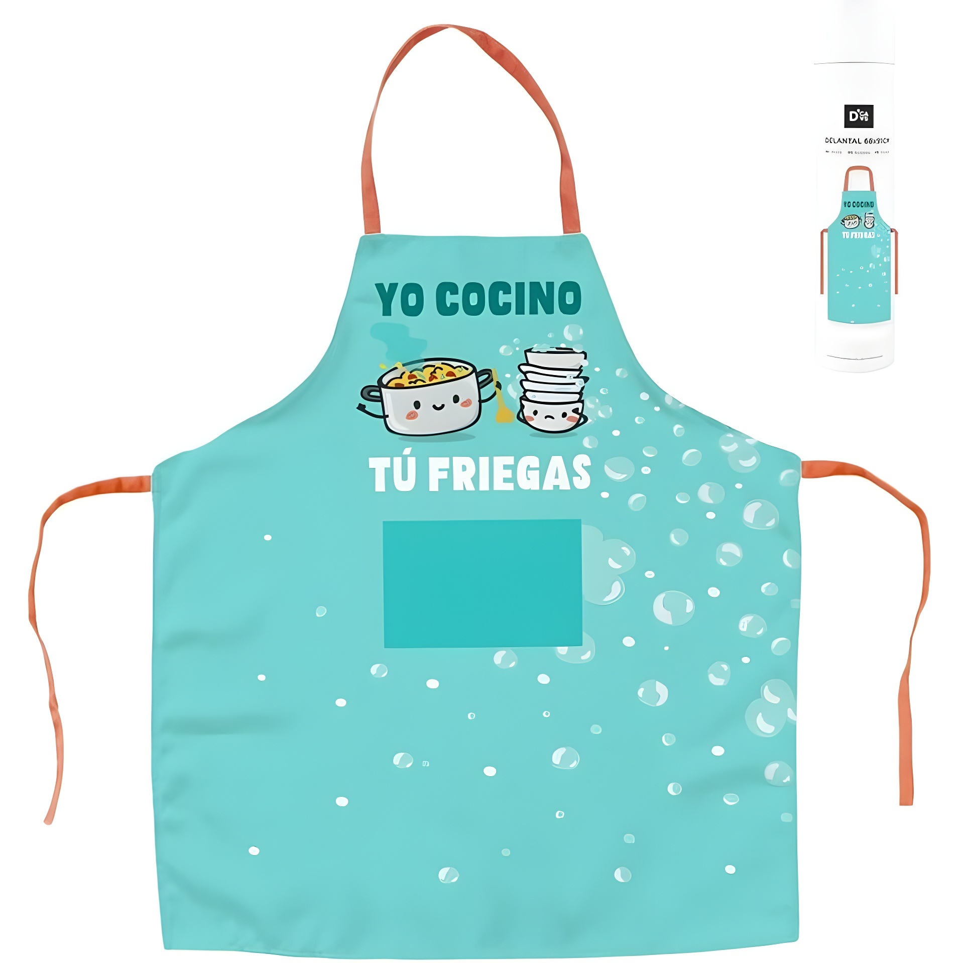 - Witziger Aufdruck 'Ich koche, Sie spülen', der zum Spielen und Lachen anregt.
