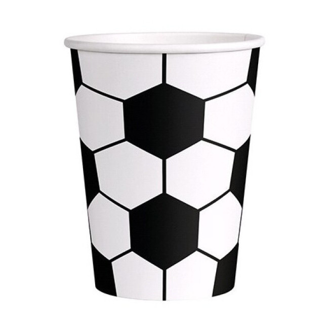 Schwarz-weiße Fußball-Fußballbecher 270 ml - 10 Stück.