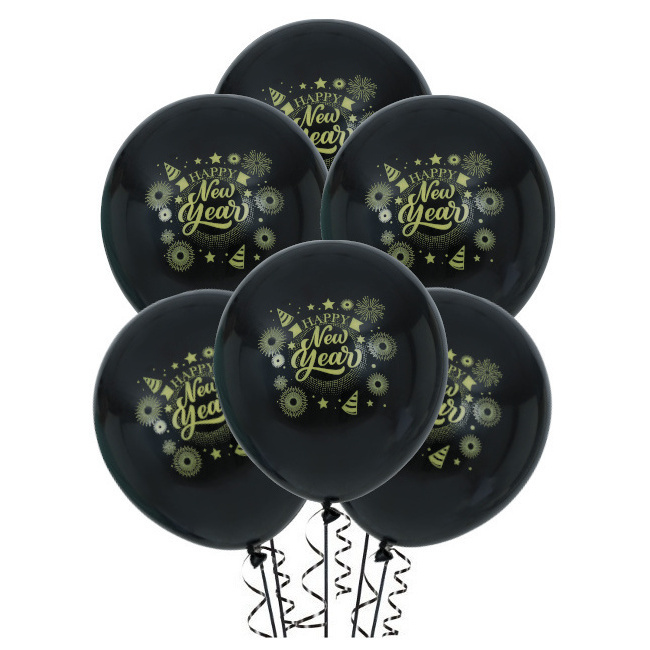 Schwarze Latexballons 'Happy New Year' - 10 Stück