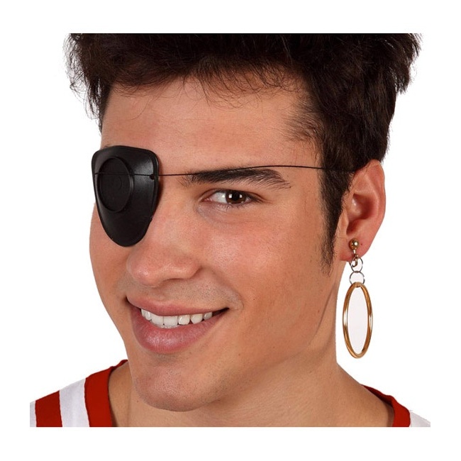 Einfaches Set mit einer schwarzen Piraten-Augenklappe aus Kunststoff und einem Ohrring.