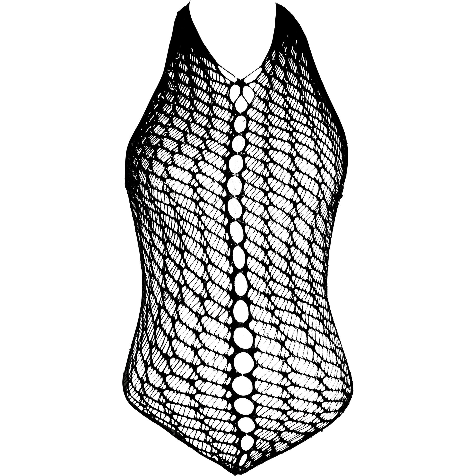 Schwarzer Netz-Body mit Strass-Details, entworfen, um Ihre Silhouette bei nächtlichen Ausgeh- und Party-Anlässen hervorzuheben. Das elastische Gewebe aus Polyamid und Elasthan sorgt für einen körperbetonten, komfortablen Sitz und verleiht einen sinnlichen, schmeichelnden Look. Glänzende Akzente auf der Oberfläche setzen einen glamourösen Touch und lassen sich ideal mit Dessous oder übergelegten Kleidungsstücken kombinieren. Ein vielseitiges Piece für Abend-, Club- und Festival-Looks.