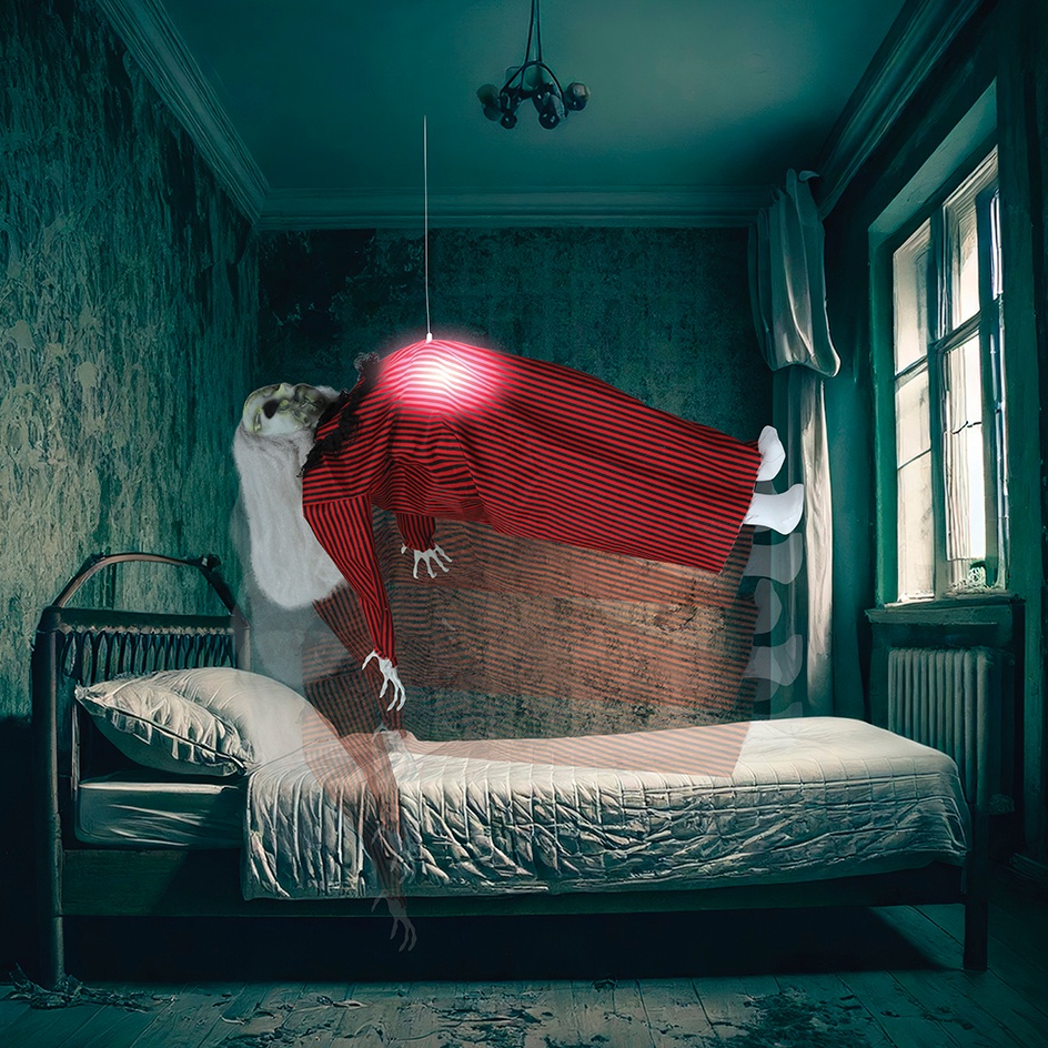 Schwebende Totenfigur mit Licht, Ton und Bewegung, 70 cm