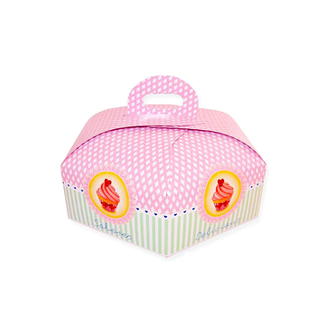 23 x 23 x 10 cm Schachtel für sechseckigen Kuchen mit Griff