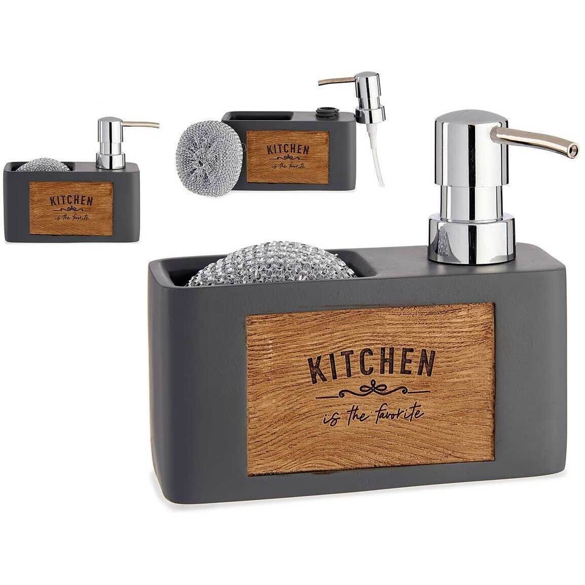 Seifenspender mit eingraviertem Scheuerschwamm aus Holz
