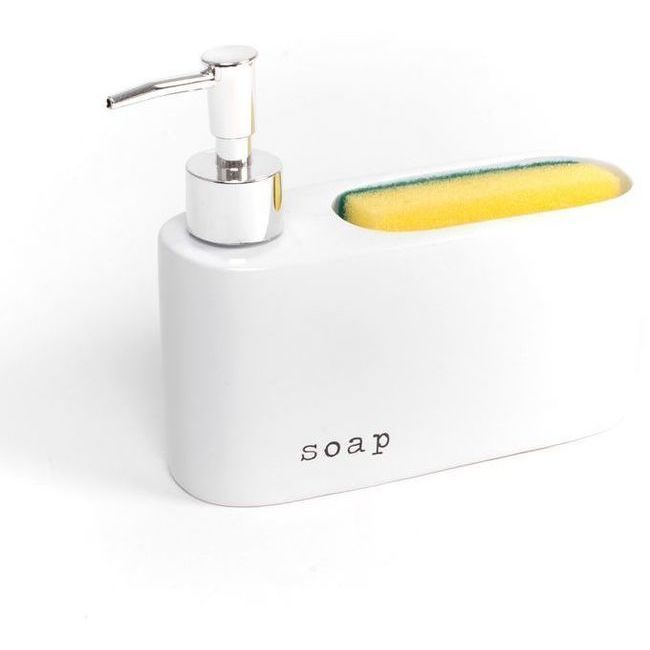 Seifenspender mit weißem, länglichem Scheuerschwamm