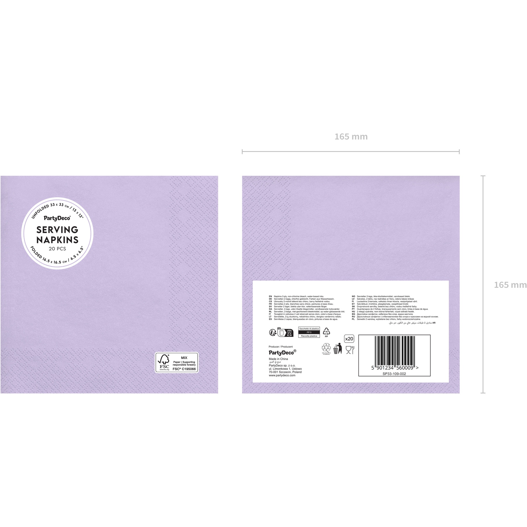 • Paket mit 20 Servietten.