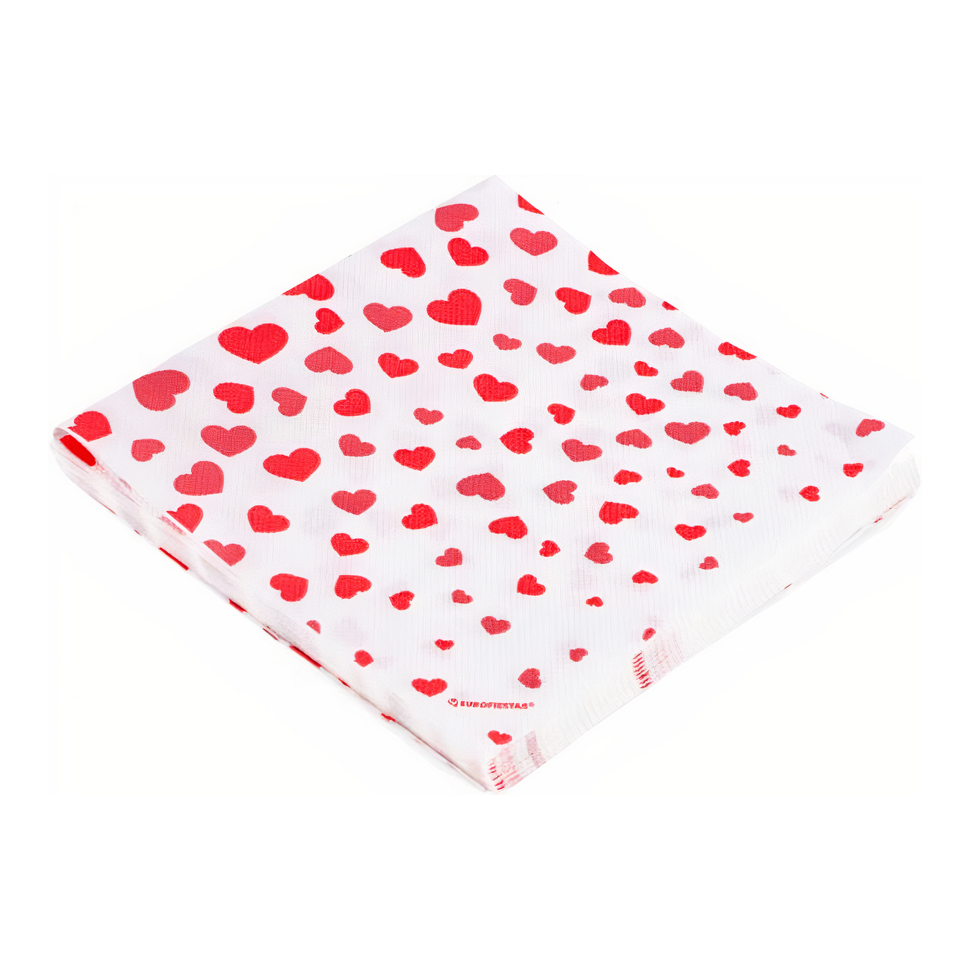 Servietten mit roten Herzen, 16,5 x 16,5 cm - 12 Stück