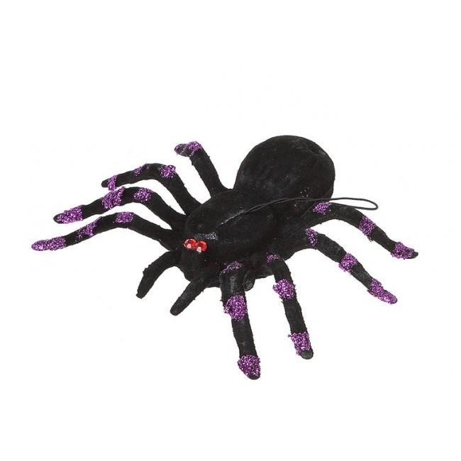 Spinne 12 x 8 cm in Schwarz mit lila Glitzer - 2 Stück
