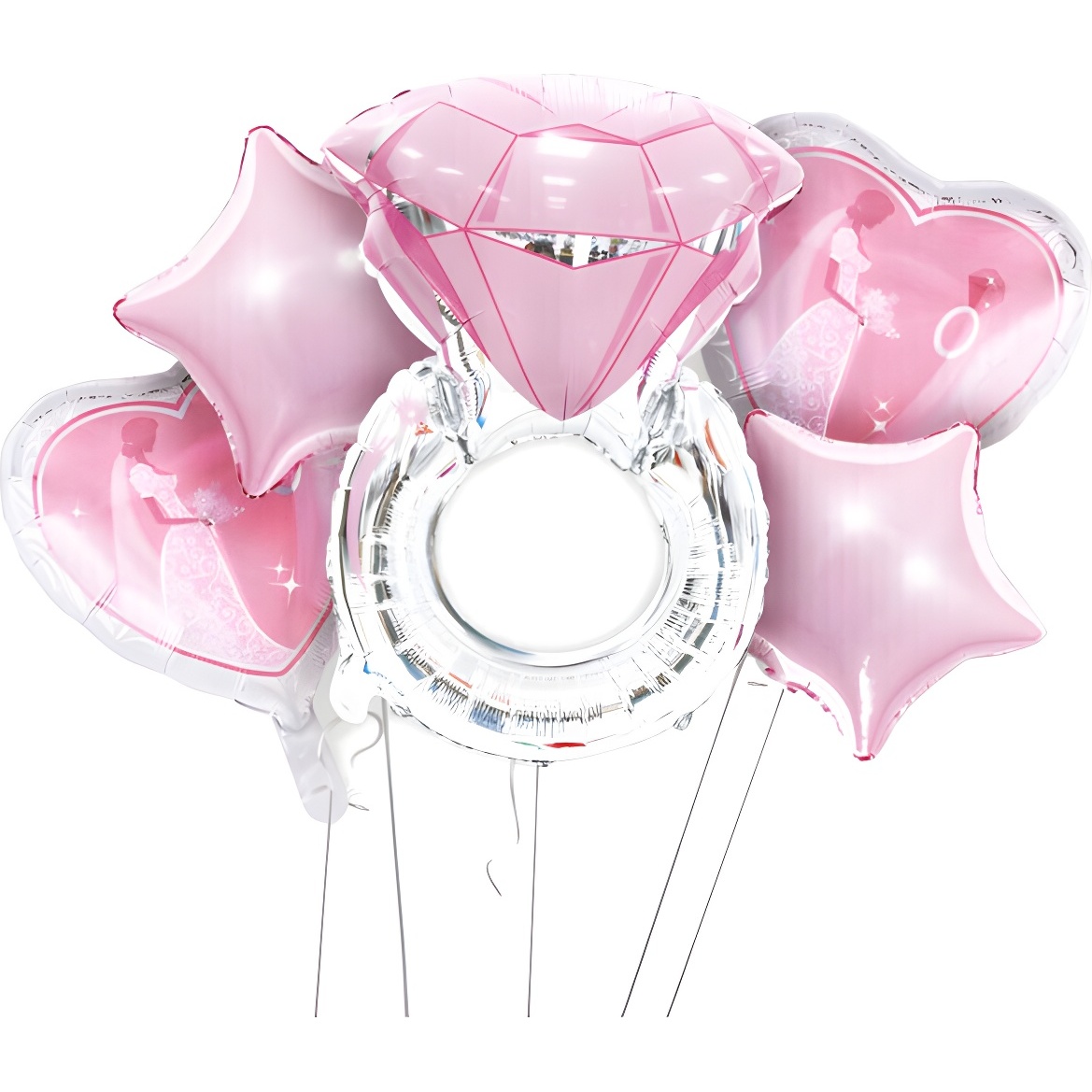 Silberner und rosafarbener Diamantring-Strauß - 5 Stück
