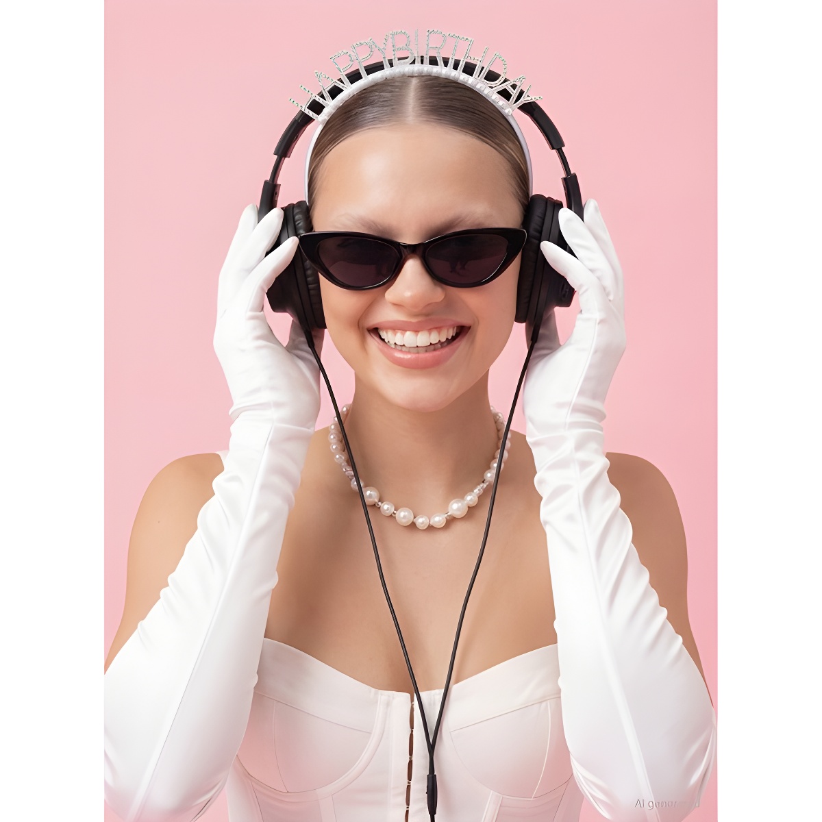 Silbernes "Happy Birthday"-Diadem mit Perlen