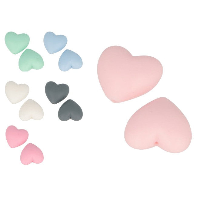Silikon-Herzperlen 2,9 x 1,9 x 1,2 cm - 2 Stk.