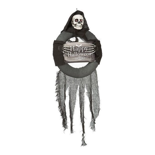 Skelett-Anhänger mit Licht und Happy Halloween-Schild 75 cm