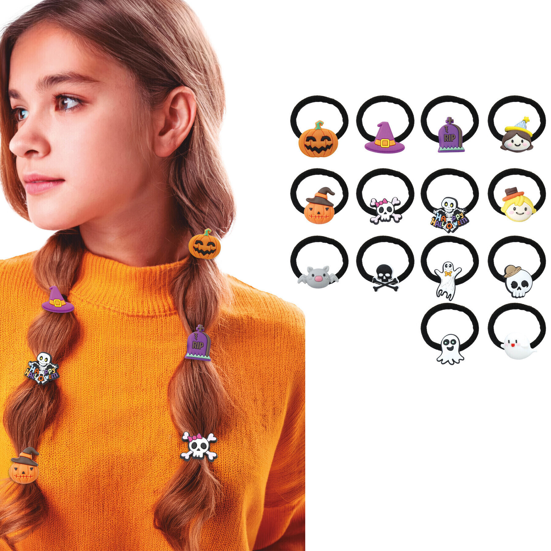 Sortierte Halloween-Haargummis - 14 Stück