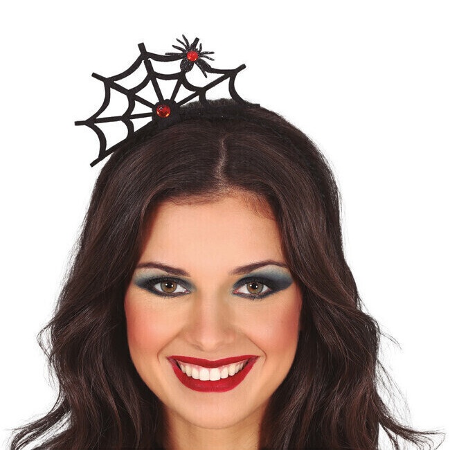 Silhouette eines Spinnennetzes mit zwei roten Edelsteinen, einer in der Mitte des Netzes und der andere am Körper der Spinne.