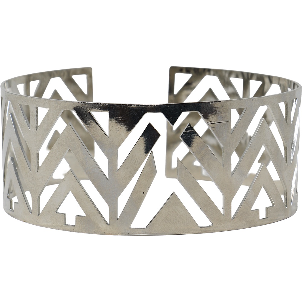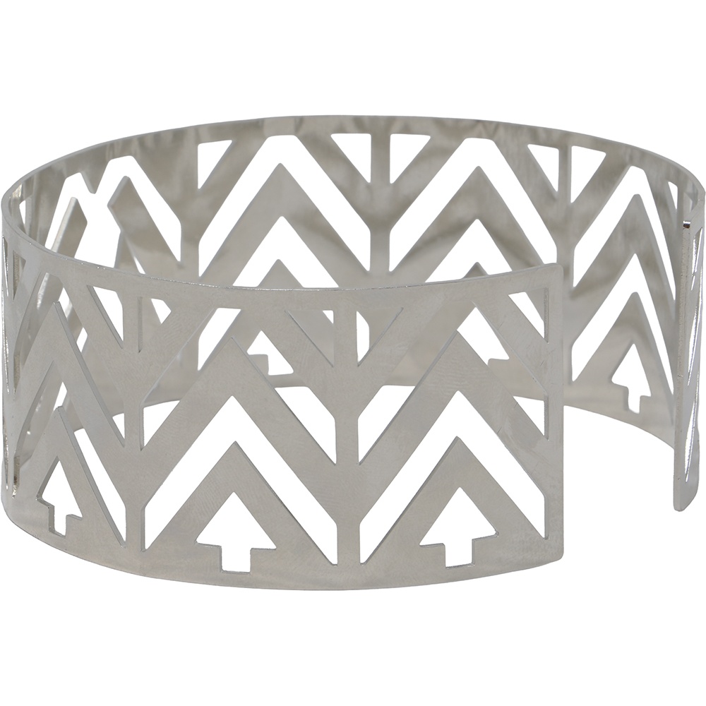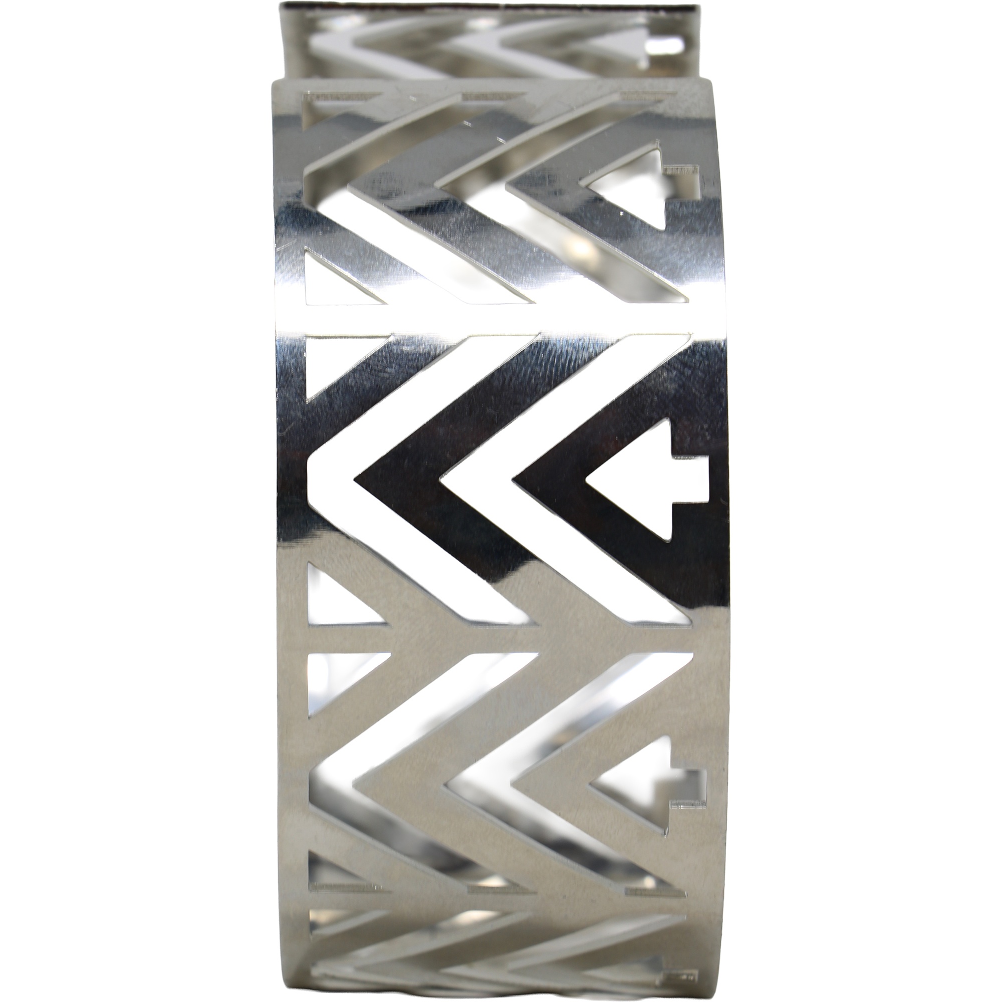 • Steifes, geometrisches Design mit reflektierendem Metallfinish für einen futuristischen Look.