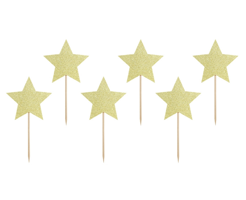 Die Stücke sind mit einem Holzstab geformt und oben mit einer Sternfigur aus Pappe mit Glitter versehen. Auch ideal für die Einhorn-Mottoparty, erhältlich auf unserer Website.