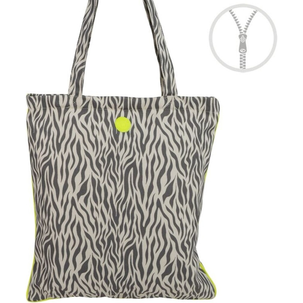Stofftasche mit Zebra?Print und neonfarbenen Akzenten, mit Reißverschluss