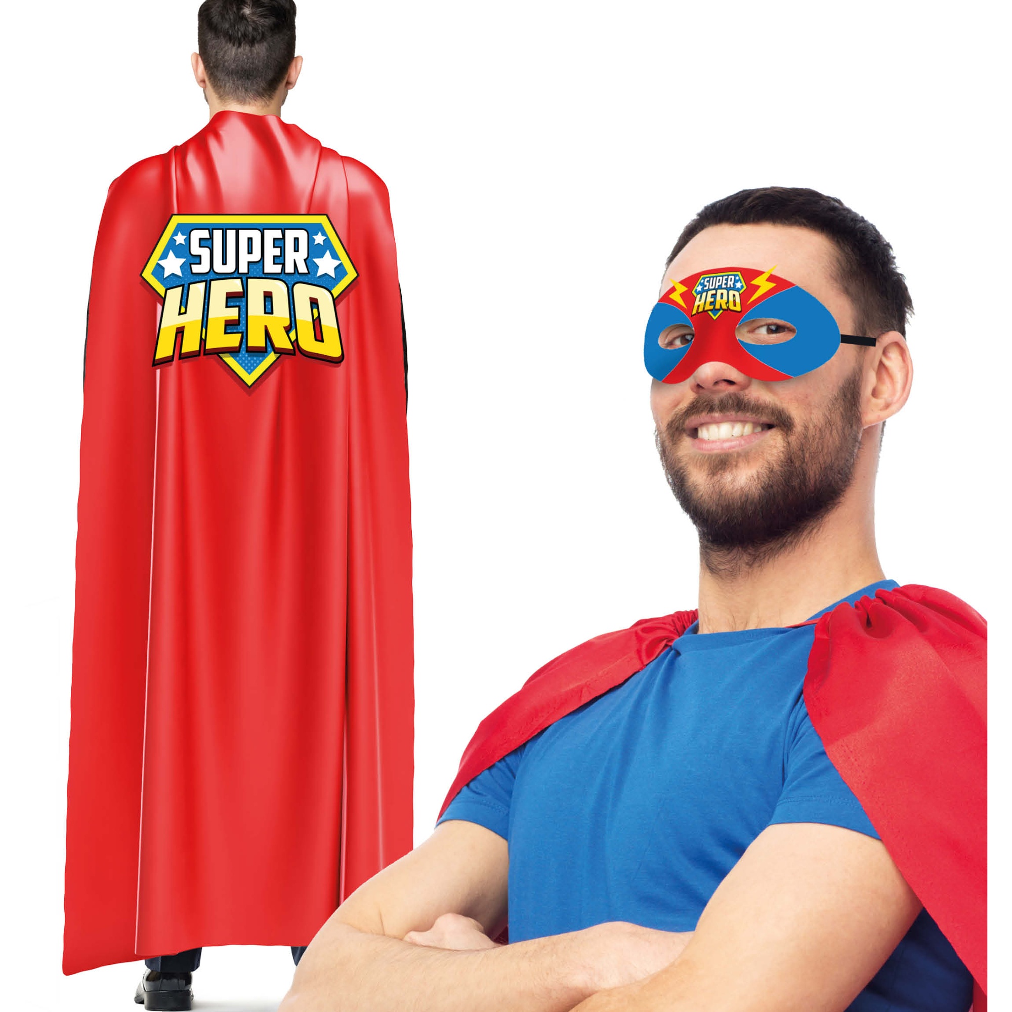- Auffälliges Design mit 'SUPER HERO'-Logo auf dem Umhang und Augenmaske mit Gummiband für sicheren Sitz.