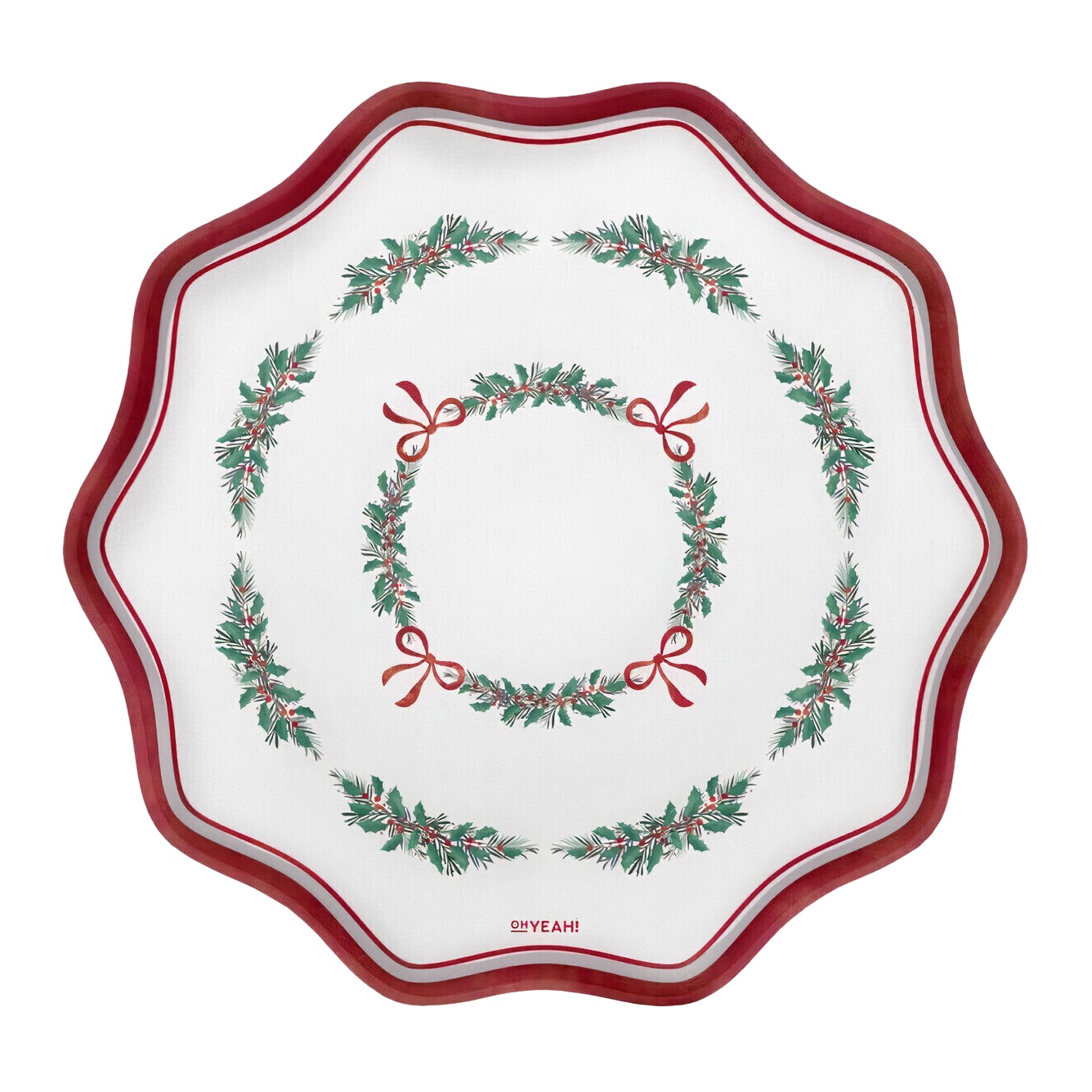 Tablett mit 33 cm Durchmesser mit Mistelzweig und roter Schleife - 2 Stück