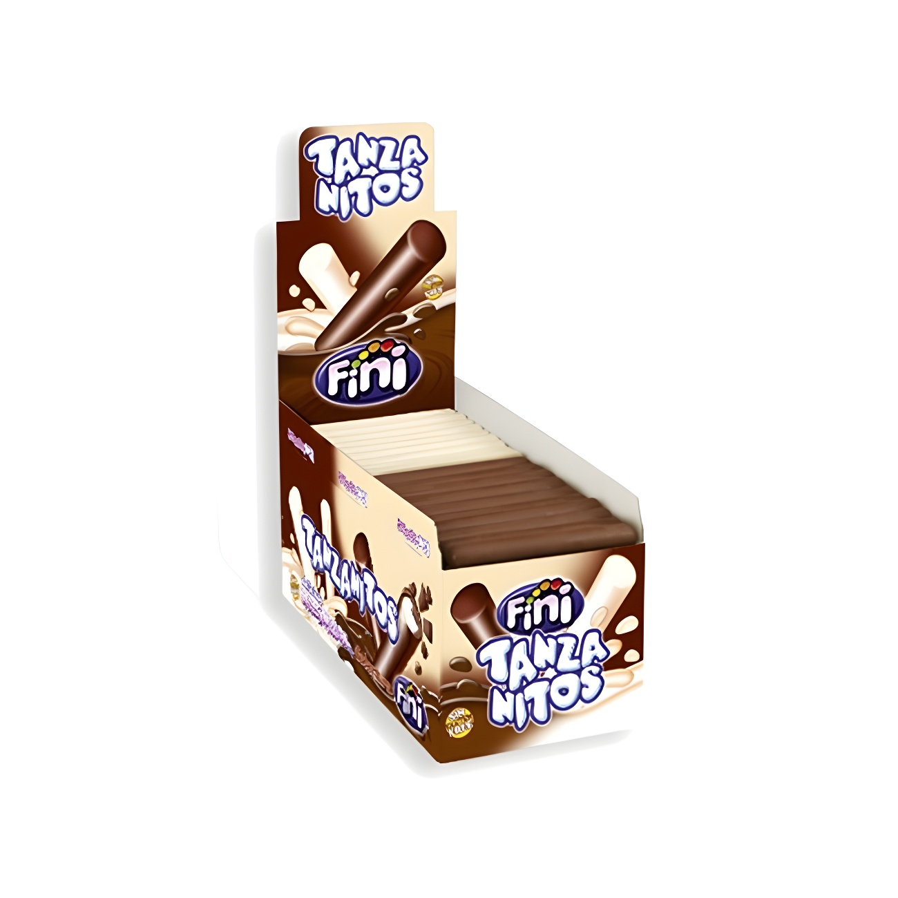 Zutaten weiß und schwarz: Schokoladenersatzüberzug (Zucker, hydriertes Pflanzenfett (Palm), entfettetes Kakaopulver, Emulgatoren: Sonnenblumenlecithin, E492, Aromen, Glukose-Fruktose-Sirup, Zucker, Wasser, Gelatine, Feuchthaltemittel: E420, Aromen. Kann Spuren von Schalenfrüchten und Soja enthalten.