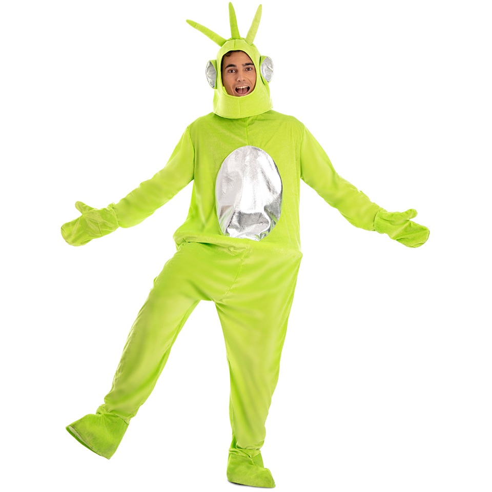 Es handelt sich um ein Kostüm für Erwachsene, das uns an eines der Teletubbies erinnert. Genauer gesagt an Dipsy.