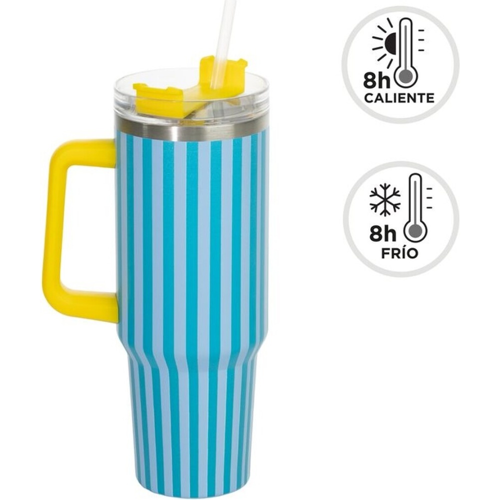 Genießen Sie Ihre Lieblingsgetränke stundenlang mit diesem großvolumigen Thermobecher im fröhlichen Streifendesign. Die doppelwandige Bauweise sorgt dafür, dass Getränke bis zu 8 Stunden heiß oder kalt bleiben - ideal für unterwegs, im Büro oder in der Freizeit. Der verschließbare Deckel mit integriertem Strohhalm ermöglicht spritzarmes, bequemes Trinken, während der ergonomische Griff den Transport erleichtert. Ein praktisches und stilvolles Accessoire für jeden Anlass.
