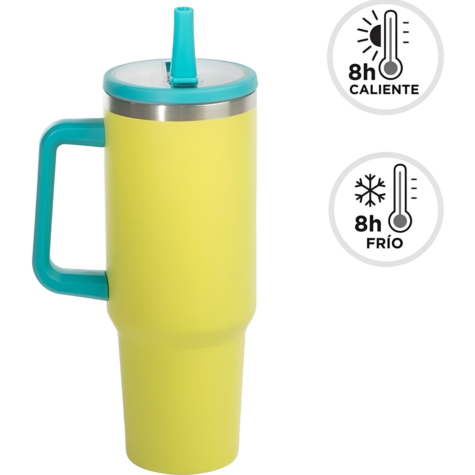 Genießen Sie Ihre Getränke mit einem Thermobecher im modernen Design und kräftiger Farbe. Sein ergonomischer Griff und der Deckel mit Strohhalm machen das Trinken unterwegs besonders praktisch. Das auffällige Finish hilft Ihnen, Ihren Becher schnell wiederzufinden und bringt einen lebendigen Akzent in Ihren Alltag. Ideal zum Mitnehmen ins Büro, auf Reisen oder zu Outdoor-Aktivitäten.