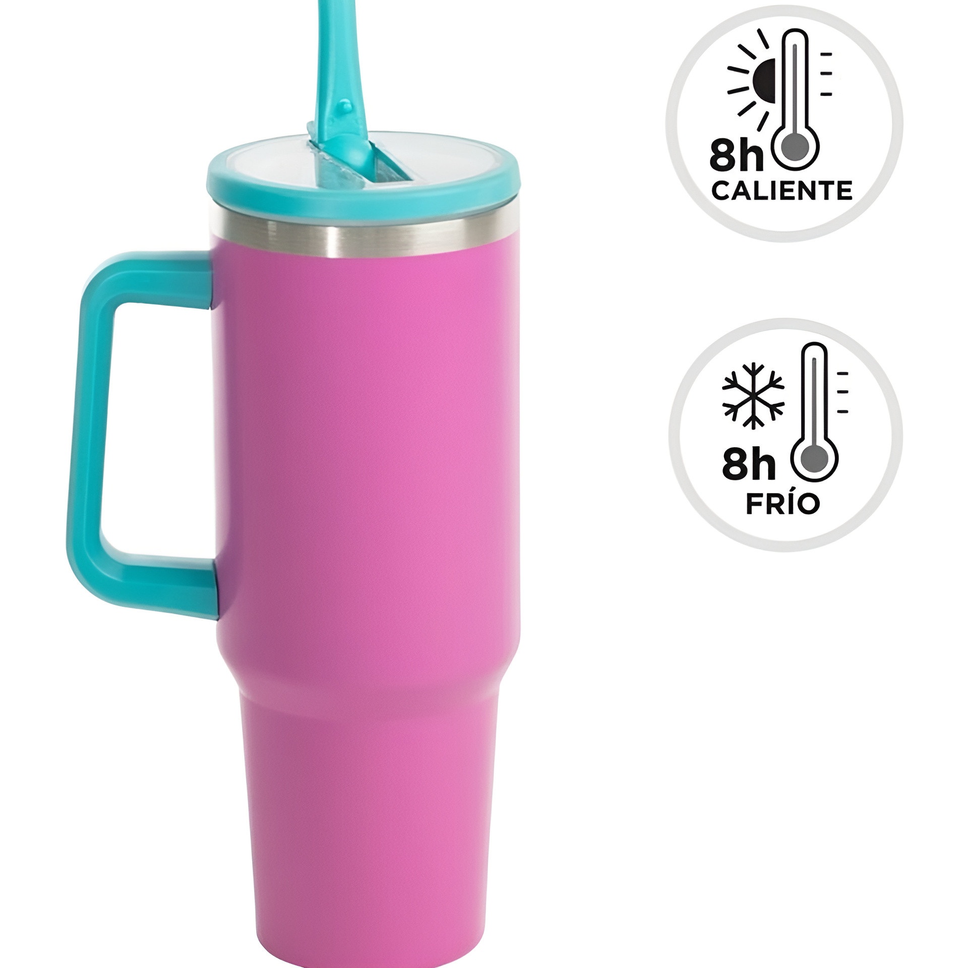 Genießen Sie Ihre Getränke unterwegs mit diesem großvolumigen Thermobecher (1,2 l) und seiner doppelwandigen Isolierung. Hergestellt aus Edelstahl, hält er Ihre Getränke stundenlang warm oder kalt und ist robust für den täglichen Gebrauch. Der auslaufsichere Deckel mit Trinköffnung und sicherem Verschluss ermöglicht sauberes Trinken im Auto oder auf Reisen. Der ergonomische Griff sorgt für angenehmen Halt, und das schlanke, hohe Design passt in die meisten Becherhalter. Das fluoreszierende Magenta verleiht einen modernen Look und macht den Becher leicht auffindbar.