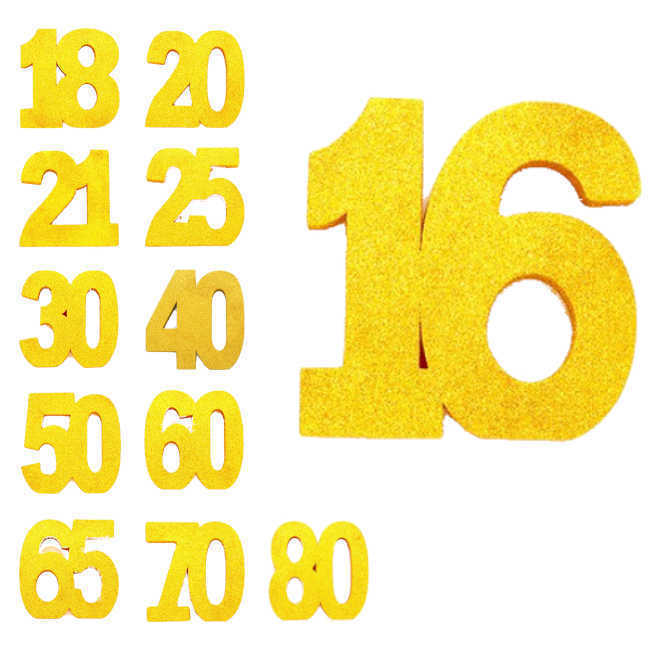 Tischaufsteller mit goldenen Glitzerzahlen 20 x 20 cm