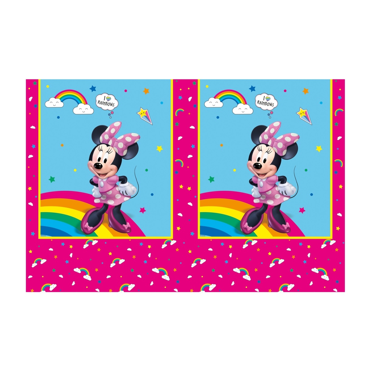 - Fröhliches Design mit Minnie Mouse und Regenbögen in leuchtenden Farben.