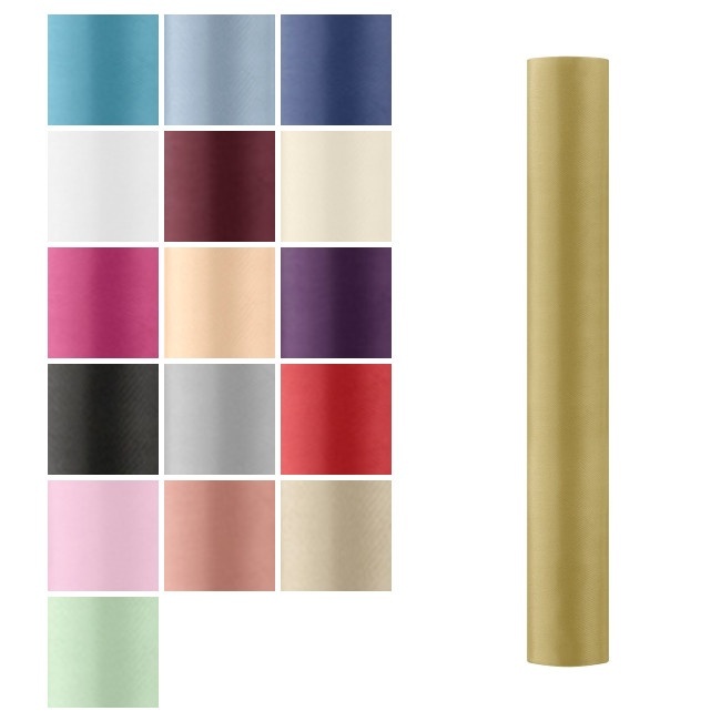 Dieser Tischläufer wird in einer 9-Meter-Rolle geliefert, die Sie nach Belieben und je nach den Abmessungen des Tisches zuschneiden können, da er nicht genäht wird.