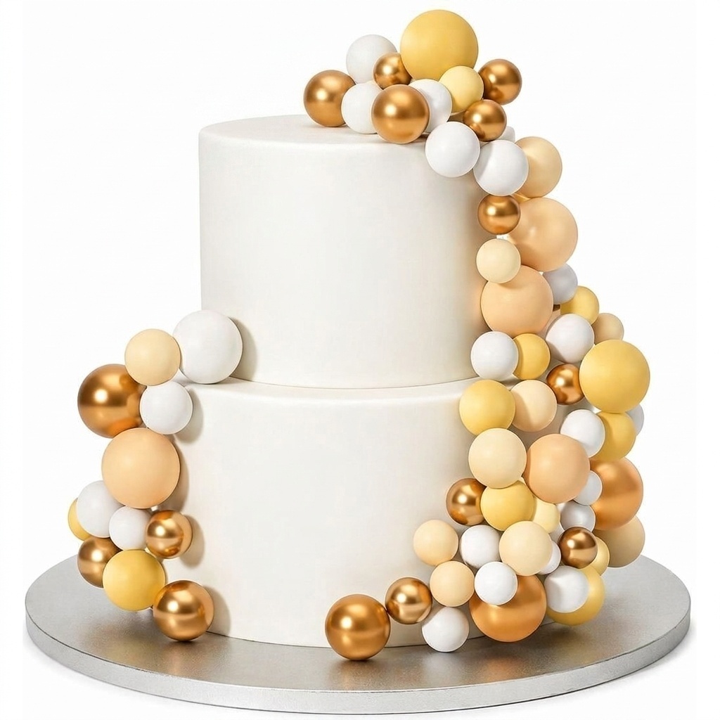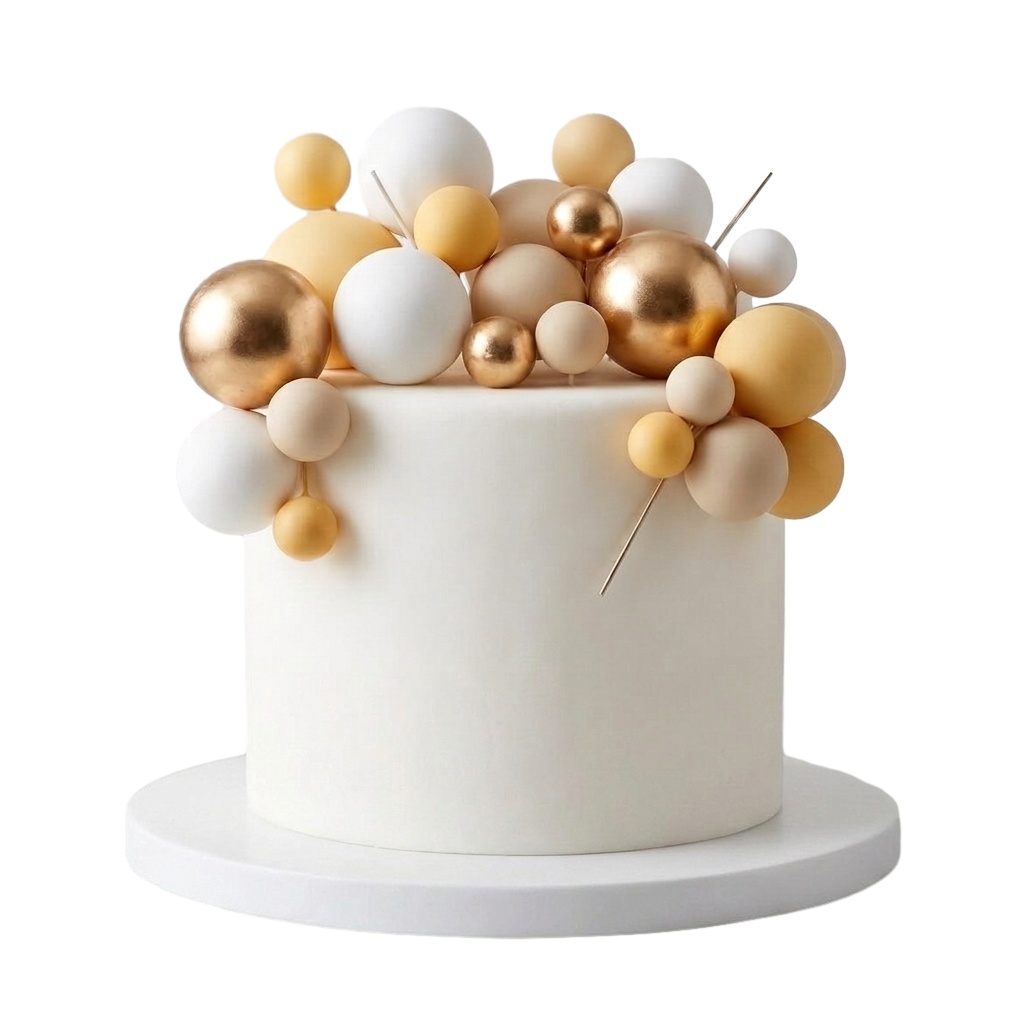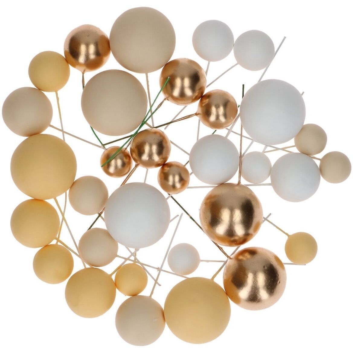 Torten-Topper mit gelben, goldenen und weißen Kugeln - 32 Stück