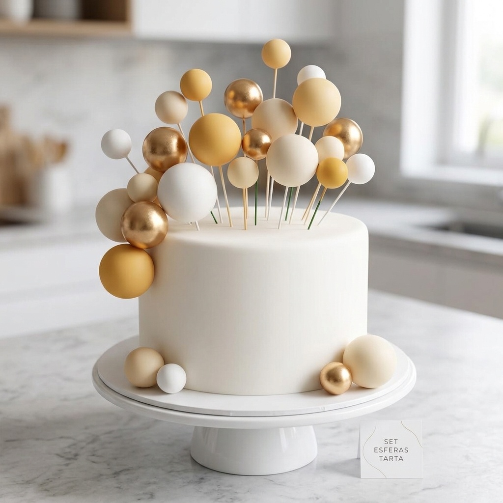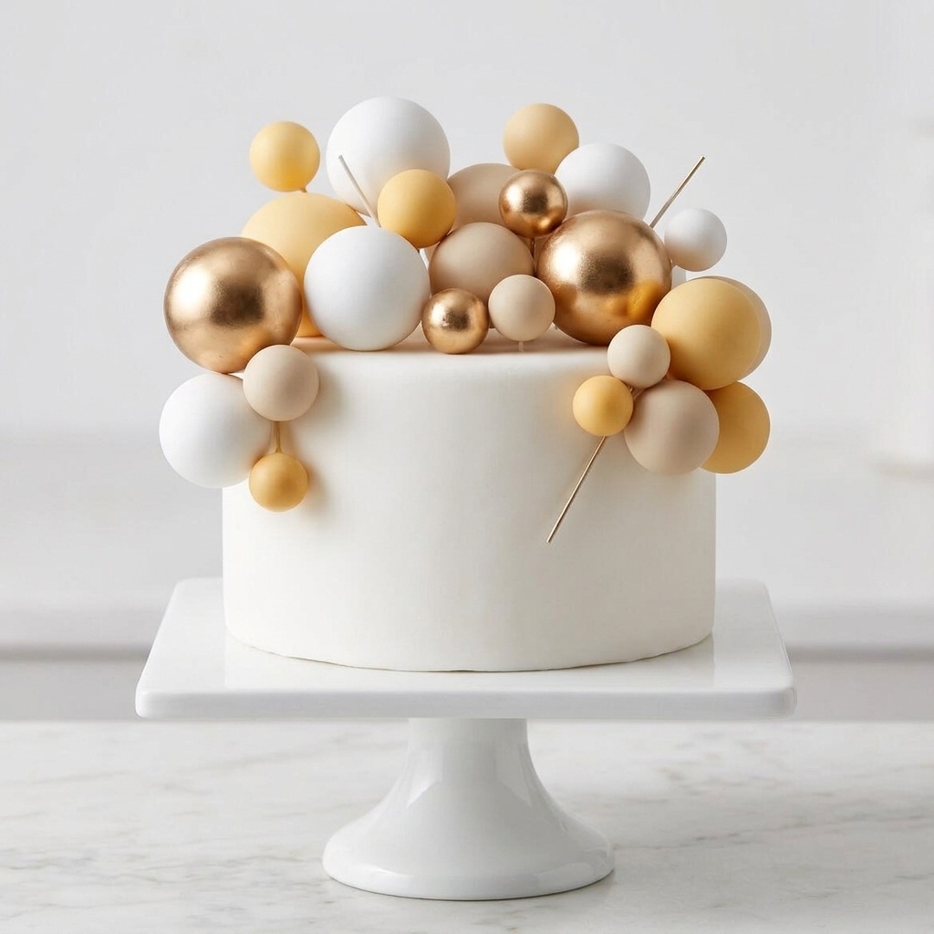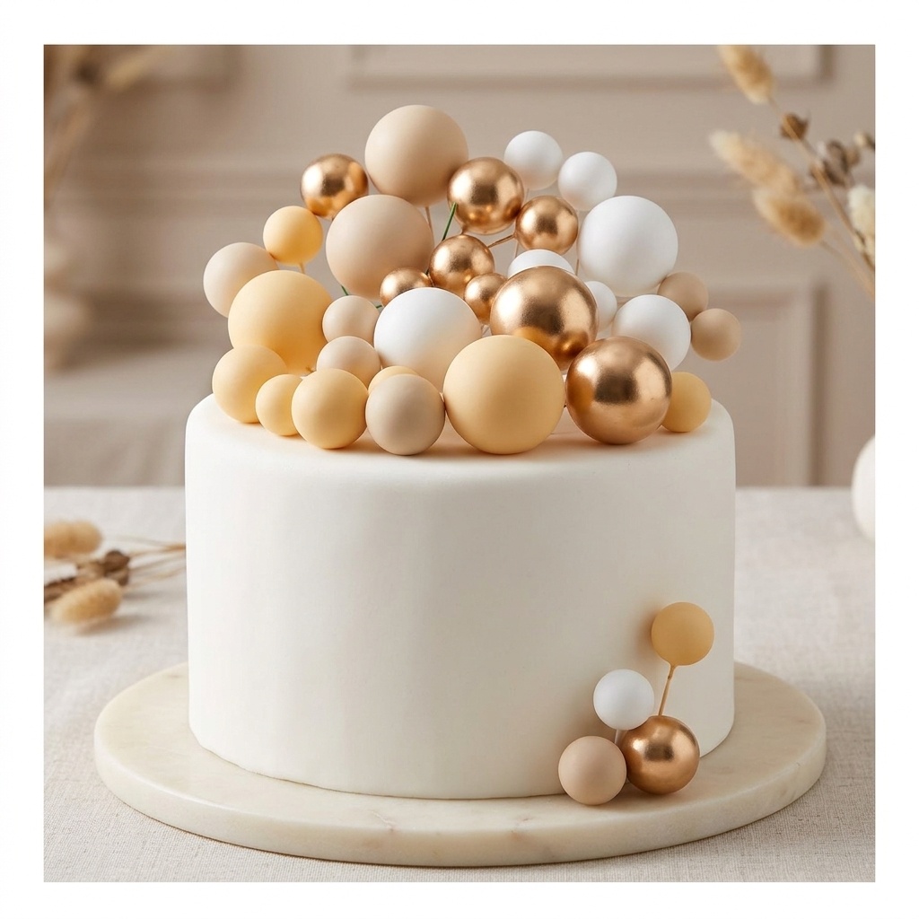 Torten-Topper mit gelben, goldenen und weißen Kugeln - 32 Stück