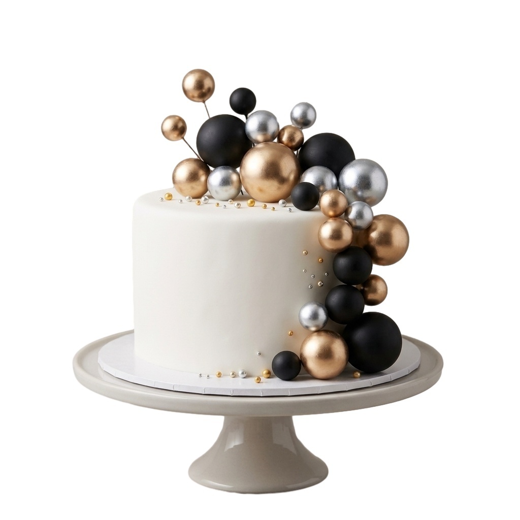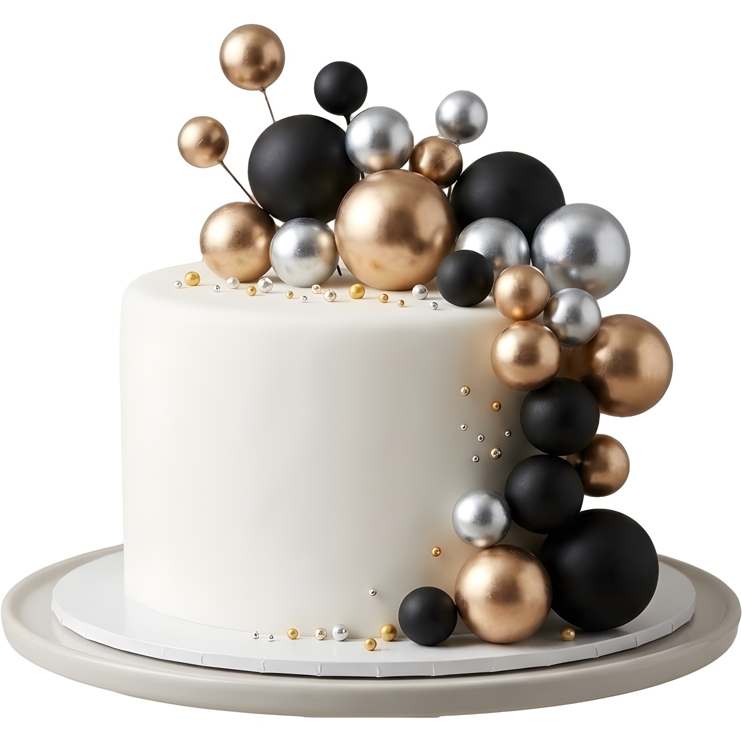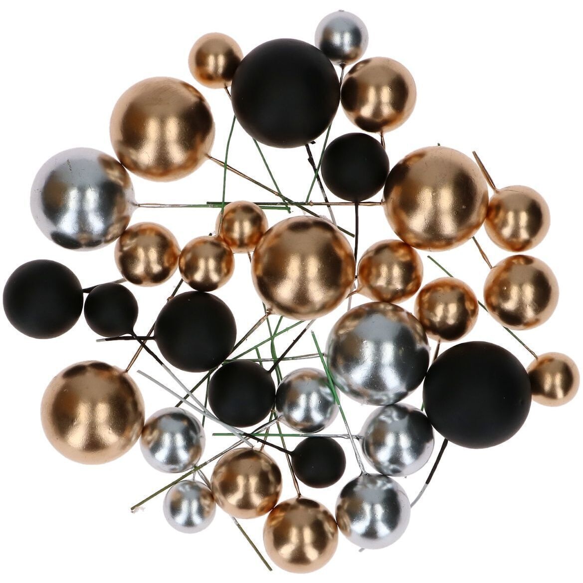 Torten-Topper mit schwarzen, goldenen und silbernen Kugeln - 32 Stück